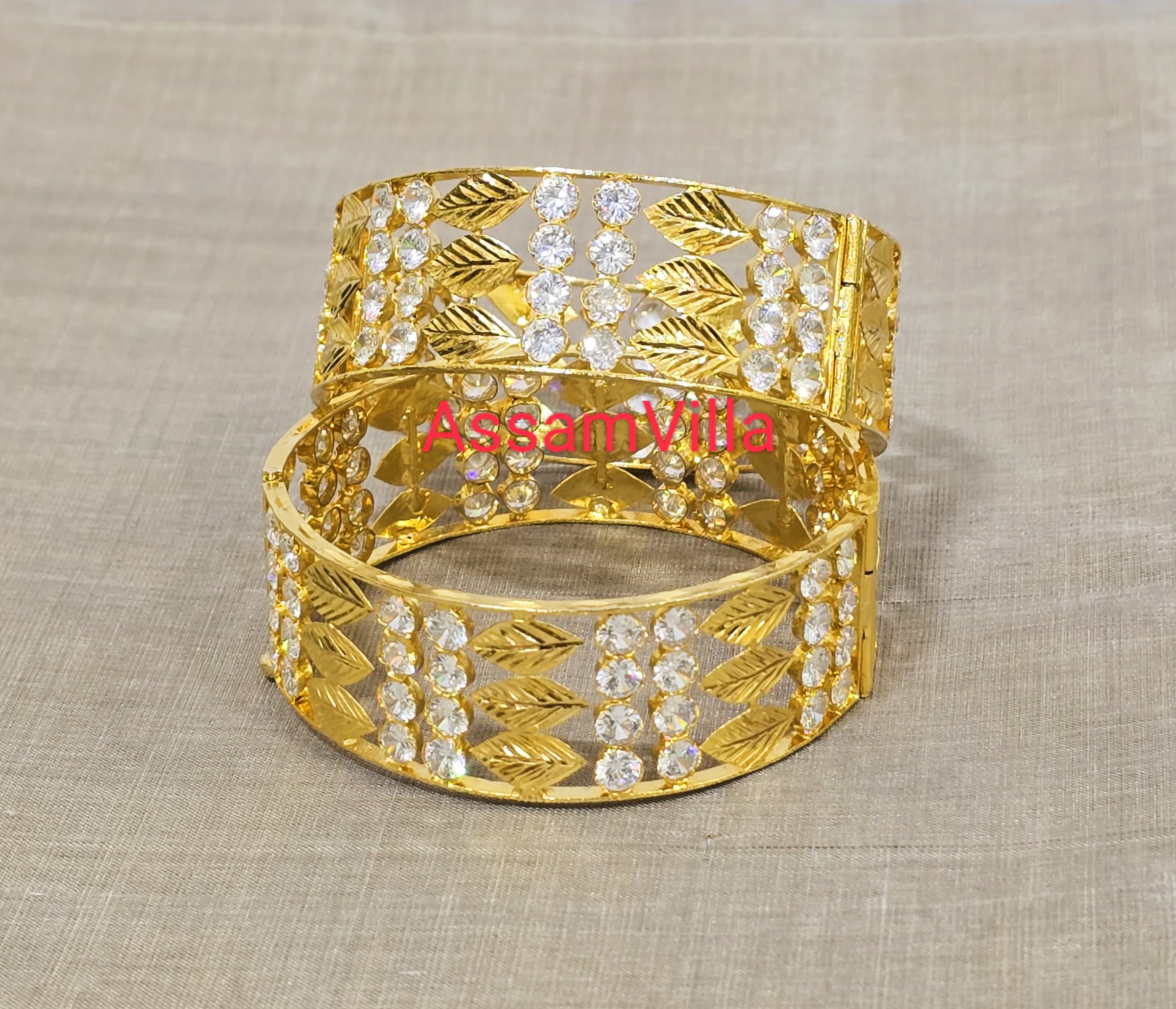 Be the first to review “Assamese traditional pure silver based gold polished white stone bangles”